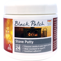 • Rubbedin Black Patch Stove Putty is a black, heat-resistant putty that withstands temperatures up to 1400°C.