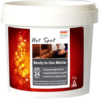 • Rubbedin Hot Spot Redi-Mortar is a heat-resistant, sandstone-coloured, ready-to-use mortar that withstands temperatures up to 1400°C.
